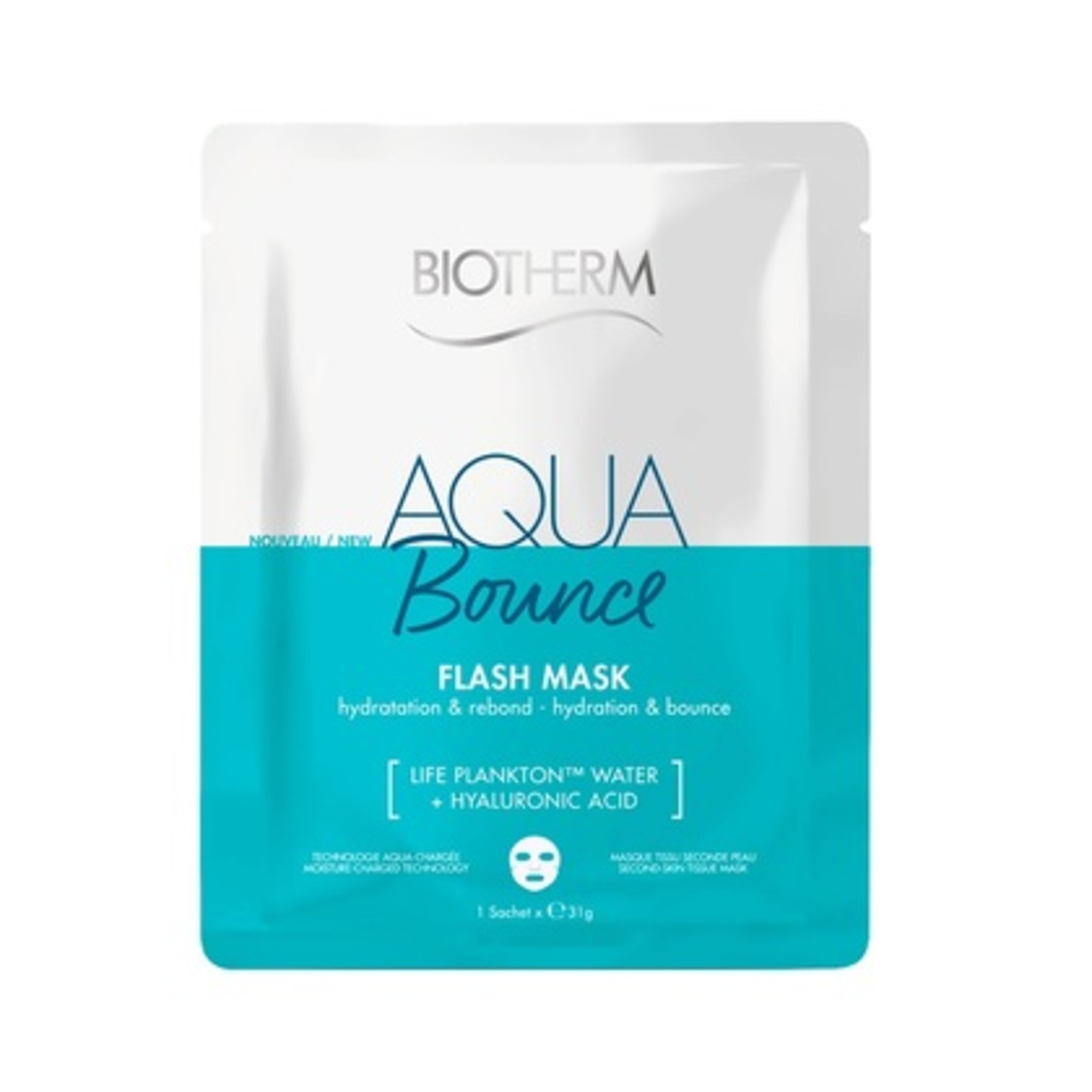 Pleťová maska Aqua Bounce Flash Mask dodáva pleti intenzívnu hydratáciu. Vďaka kombinácii kyseliny hyalurónovej a unikátnej ingrediencie Life Plankton je pleť hĺbkovo hydratovaná, jej tón je zjednotený a už po jednej aplikácii pôsobí pokožka pevnejším dojmom.