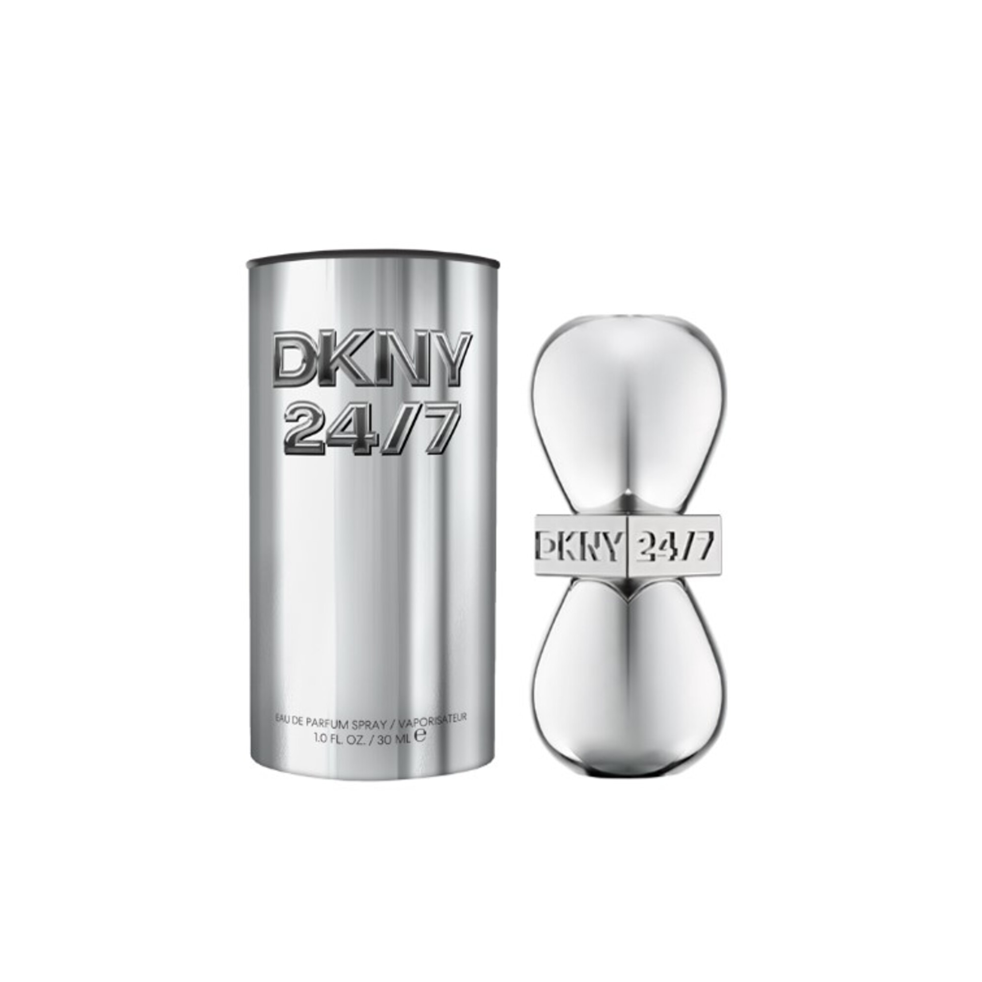 Dizajn DKNY 24/7 odráža samotný New York. Flakón v tvare presýpacích hodín je symbolom nepretržitého plynutia času v dynamickom meste a predstavuje premenu dňa na noc a naopak. Flakón je povrchovo ošetrený chrómovou striebornou vrstvou, ktorá je poctou ikonickým architektonickým prvkom panorámy mesta. Futuristická strieborná metalická nádobka je navrhnutá tak, aby bola výrazným kúskom zhmotňujúcim ducha New Yorku a aby upútala pozornosť tých, ktorí oceňujú jedinečnú kombináciu nadčasovosti a špičkového dizajnu mesta.