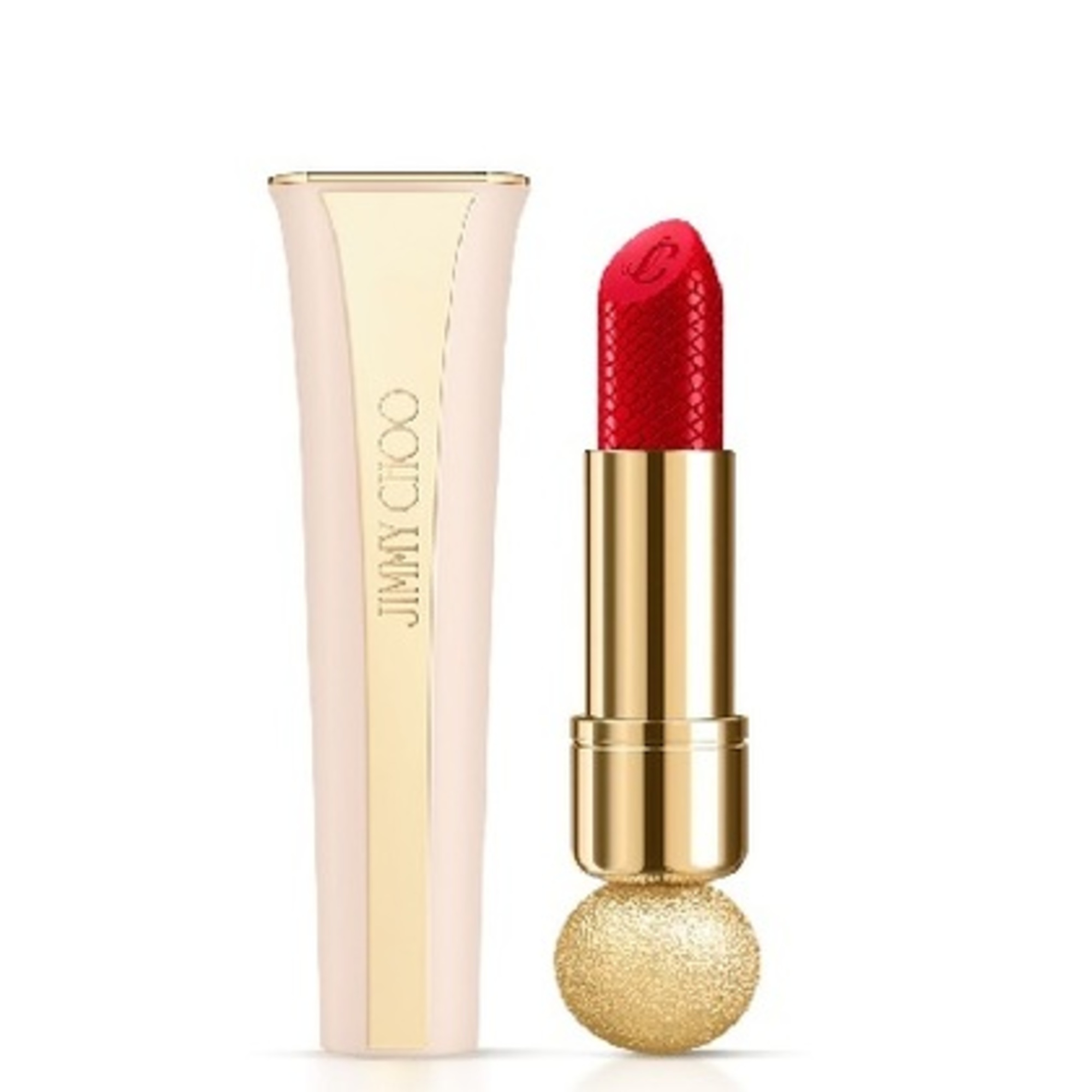 Rúž na pery sa predstavuje v nahom dizajne s potlačou pytóna ozdobenom zlatými trblietkami a logom Jimmy Choo. Dizajn dotvára monogram JC a jemná vôňa esencie Iris Crush, ktorá je súčasťou Seduction Collection.